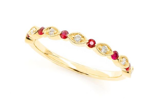 - Vibrant red rubies and sparkly diamonds give a regal aura to this fancy band.
