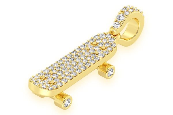 Skateboard Diamond Pendant 14k Solid Gold 0.35ctw