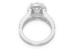 • The design also features a split halo shank lined with VS diamonds to finish off this stately and regal engagement ring.