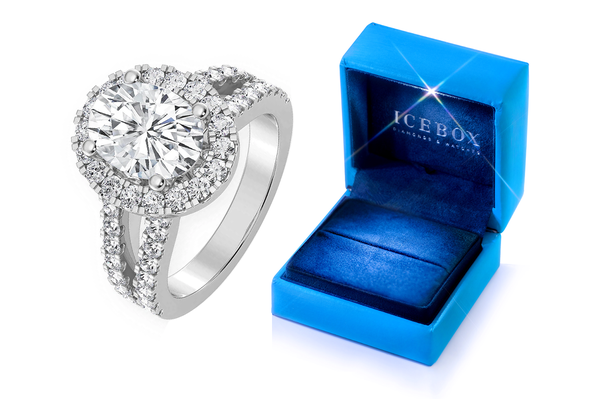 This Icebox 2 Carat Oval Cut 2 Row Split is made of 14K White gold.
