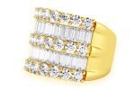Super Three Row Round & Baguette Diamond Ring 14k Solid Gold 5.25ctw