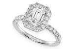 Thav – 0.75ct Emerald Solitaire – Scallop Halo One Row – Diamond Engagement Ring – All Natural