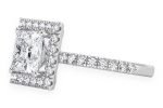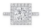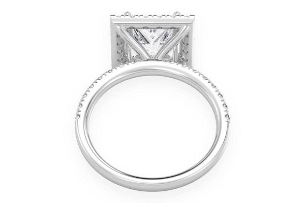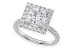 - It features a stunning 2.00ct princess cut center stone surrounded by a majestic halo of diamonds, which continue gracefully down the band.