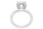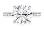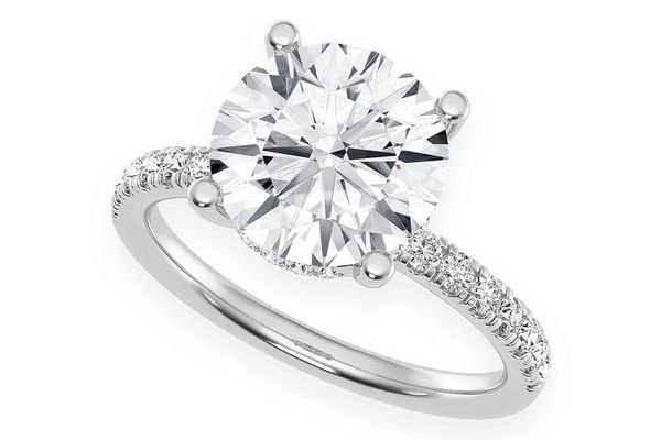 - The astonishing 3.00ct round center diamond is set in a four-prong setting, allowing maximum light to pass through and enhance the natural beauty of the diamond.