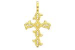 This Icebox Thorn Bezel Cross is made of 14K Yellow gold.