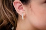 - The three-row hoops are adorned with impressive 1.75ctw VS diamonds, meticulously placed in three rows that curve with the hoop silhouette.