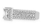 • This magnificent and stunning diamond halo engagement ring features a dazzling 1-carat princess cut stone exuding impressive sparkle and elegance.