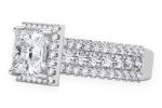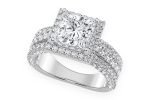 - The band on this masterpiece consists of three exquisite diamond rows, bringing the total weight to 3.65ctw.