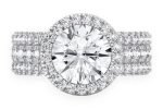 - This stunning diamond halo engagement ring features a dazzling 2ct round brilliant center stone exuding brilliant sparkle and elegance.
