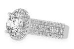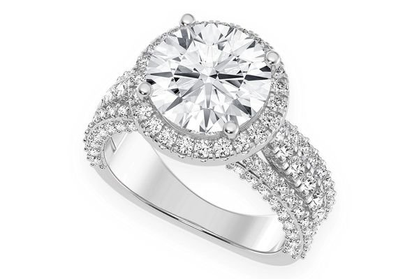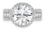 - This stunning diamond halo engagement ring features a dazzling 3.00ct round center stone exuding impressive sparkle and elegance.